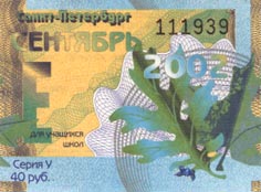 Единый проездной билет для школьников Сентябрь 2002 года Цена 40 рублей |